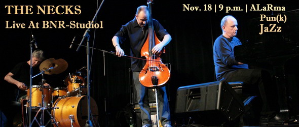 Както вече обявихме преди няколко месеца, The Necks от Сидни ще оглавят есенно-зимния фестивален сезон на "Аларма" на 18 ноември от 21.00 ч. в Първо студио на Националното радио. Триото пристига в София с новия си албум "Vertigo" (18 в дискографията им, помни се лесно – като датата 18 ноември). С този концерт радиофестивалът Alarma Punk Jazz на програма "Христо Ботев" ще отбележи 7-ия си рожден ден. Датата е и единствената източноевропейска в турнето на тримата австралийци – Крис Ейбрахамс (пиано), Лойд Суонтън (контрабас) и Тони Бък (барабани).