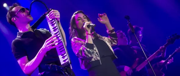 Важен момент, който в общи линии спасява соц. обстановката на "Универсиада" и не съвсем бляскавите ѝ условия (но не сме тук, за да мрънкаме, разбира се), са мултимедията и осветлението на събитието. Винаги е впечатляващо, когато звук, визуализация и светлина са не просто в симбиоза, а изграждат цялостното усещане за случващото се много по-пълно. Но този път саундът си го биваше. Към това добавяме и факта, че Каро Емералд сменяше тоалетите си често-често, отново в синхрон с цялостната визия на сцената. Основното усещане е за тропическа обстановка, вкусни коктейли, слънчеви хоризонти. Преобладаващо жълто, оранжево, червено и мотиви на екзотични цветя се наблюдаваха по време на "Tahitian Skies" и "Quicksand". Дори на малко по-емоционалната "Never Ever" усещането за ритъма някак не позволява на човек да изпадне в меланхолично настроение, а по-скоро е някак фестивално, празнично. Пръст в това има и бендът на холандката, осезаемо предаващ енергията си на публиката. С наистина удивително чувство за фънк и суинг.